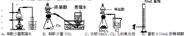本题解析:A、对天然水加热,使水变成水蒸气进入到成冷水的烧杯中,水蒸气遇冷,变成小水滴,即为蒸馏水,故A正确;