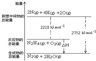 ⑵NH3与NaClO反应可得到肼(N2H4),该反应的化学方程式为:2NH3+NaClO=N2 H4+NaCl+H2O,答案:2NH3+NaClO=N2 H4+NaCl+H2O;⑶从图中读出,△H=22218kJ·mol-1-2752kJ·mol-1=-534 kJ·mol-1,所以肼燃烧生成气态水的热化学方程式为:N2 H4(g) + O2(g) = N2(g) + 2H2O(g ) ΔH=-534 kJ·mol-1,答案:N2 H4(g) + O2(g) = N2(g) + 2H2O(g ) ΔH=-534 kJ·mol-1;