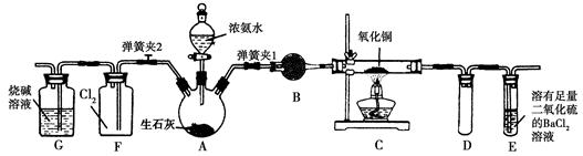 本题解析:A是制备NH3的装置,B是干燥NH3的装置,C是NH3与CuO的反应装置,E是处理NH3的尾气装置,F是NH3与Cl2的反应装置,G是处理尾气Cl2的装置。