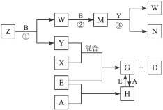 2、填空题 A、B、C、D、E是五种中学化学常见的单质,已知A、B、C、D在常温下均为气态。其中D能分别跟A、B、C在一定条件下两两化合,生成化合物X、Y、Z;A与B、C均不能直接化合。有关的转化关系如下图所示(反应条件均已略去)。