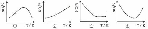 N2O4(g)? ΔH<0 反应相同时间后,分别测定体系中NO2的百分量(NO2%),并作出其随反应温度(T)变化的关系图。下列示意图中,可能与实验结果相符的是