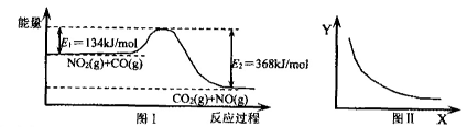 CO2(g)十NO(g)反应过程中能量示意图。一定条件下,在固定容积的密闭容器中该反应达到平衡状态。当改变其中一个条件X,Y随X增大的变化关系曲线如图Ⅱ。