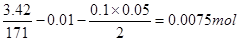 5、计算题 向50mL稀硫酸和稀盐酸的混合溶液中,加入3.42g氢氧化钡粉末,充分反应后过滤,得到干燥的沉淀物2.33g,所得溶液中氢氧根离子的浓度为0.1mol/L,试求原混合液中和