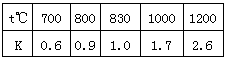 2、填空题 在一定体积的密闭容器中,进行如下化学反应:其化学平衡常数K与温度t的关系如下:CO2(g)+H2(g)