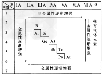 (3)按照表中元素的位置,认真观察从ⅢA族的硼到ⅦA族的砹连接的一条折线,我们能从分界线附近找到