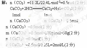 (2)生成CaCl2的物质的量浓度是多少?(假设反应前后溶液体积保持不变)