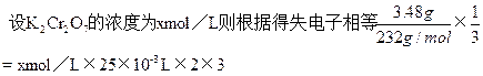 2、选择题 将3.48克Fe3O4完全溶解在100mL1mol/LH2SO4中,然后加入K2Cr2O7溶液25mL,恰好使溶液中Fe2+全部转化为成Fe3+,Cr2O72-离子全部还原为Cr3+。则K2Cr2O7溶液的摩尔浓度为?