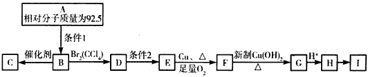 3、推断题 已知:A是一卤代烃,其核磁共振氢谱中只有一个峰;C是高分子化合物;I是一种六元环状酯。转化关系如图所示。 回答下列问题