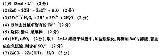 (2 )已知ZnO为两性氧化物,与氢氧化钠溶液反应生成可溶性的锌酸盐(Zn02-),写出反应的离子方程式________________