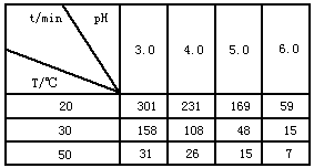 3、填空题 O3在水中易分解,一定条件下,O3的浓度减少一半所需的时间(t)如表所示。