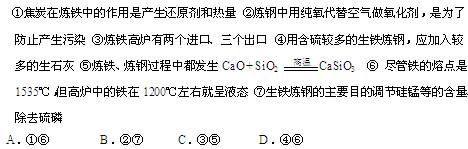 1、选择题 下列关于钢铁冶炼的说法错误的是: