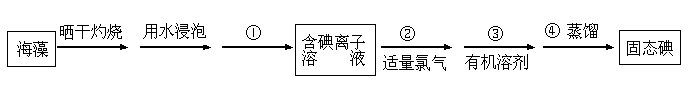 (已知过程②中反应的离子方程式为:2I- + Cl2 = 2Cl- + I2)