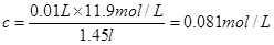 (3)由于在稀释过程中,溶质是不变的,所以稀释的后的溶液浓度是。
