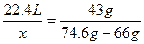 4、选择题 标准状况下,一个装满氯气(Cl2)的集气瓶质量为74.6 g,若装满氮气,其质量为66 g,则此容器的体积为(?)