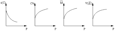 xC(g),平衡后,C的体积分数为W%,若维持容器容积和温度不变,0.6molA 、0.3molB 和1.4molC为起始物质,达到平衡后,C的体积分数也为W% 。平衡后若缩小容器体积,C的浓度c(C)、C的体积分数C%、混合气体平均相对分子质量(M)和正反应速率[V(正)],随压强(P)的变化,一定符合的是
