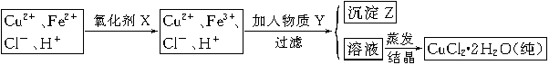 (2)氯化铜晶体(CuCl2·2H2O)中含FeCl2杂质,为制得纯净氯化铜晶体,首先将其制成水溶液,然后按下面所示的操作步骤进行提纯。