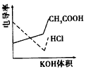 1、选择题 电导率是衡量电解质溶液导电能力大小的物理量,根据溶液电导率变化可以确定滴定反应的终点。下图是用KOH溶液分别滴定HCl溶液和CH3COOH溶液的滴定曲线示意图。 下列示意图中,能正确表示用NH3·H2O溶液滴定HCl和CH3COOH混合溶液的滴定曲线的是