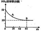 (NH2)2CO(s) +H2O(g),在密闭反应容器中,混合气体中NH3的含量变化关系如图所示: