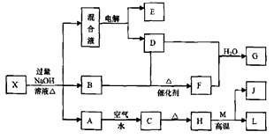 4、推断题 有一化合物X,其水溶液为浅绿色,可发生如下的转化关系(部分反应物、生成物已略)。其中,B、D、E、F均为无色气体,M、L为常见的金属单质,C为难溶于水的红褐色固体。在混合液中加入BaCl2溶液可生成不溶于稀盐酸的白色沉淀,H和M反应可放出大量的热。请回答下列问题: