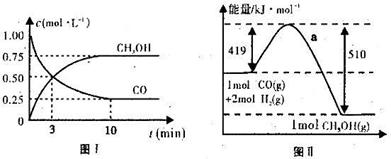 (1)图I是反应时CO和CH3OH的浓度随时间的变化情况,从反应开始到平衡,用CO浓度变化表示平均反应速率v(CO)=_______________。