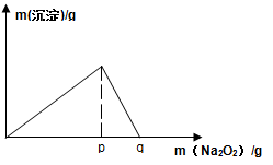 (4)将F与一定量盐酸混合,二者恰好反应得到溶液M,在M中加入Na2O2时,加入Na2O2的质量与产生沉淀的质量具有如图所示关系,则p点时产生沉淀与放出气体的物质的量之比为?,从开始加Na2O2固体至q点的整个过程中,总反应的离子方程式为?。