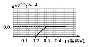 1、选择题 向盛有一定量氢氧化钠溶液的烧杯中通入标准状况下448mL氮气和二氧化碳的混合气体后得到溶液A,在溶液A中逐滴加入0.1 mol/L的稀盐酸至过量,并将溶液加热,产生的二氧化碳气体的物质的量与加入稀盐酸的体积的关系如图所示(忽略二氧化碳的溶解和氯化氢的挥发)。下列说法正确的是(?)