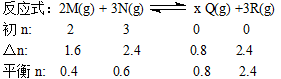 从以上数据可看出:x=1,平衡时N的浓度为0.3 mol/L,N的转化率为80%