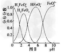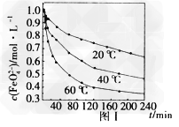 (4)用适量的K2FeO4配制?=1.0?mol·L-1的试液,将试液分别置于20℃、40℃、60℃的恒温水浴中,测出?的变化如图I所示,则(3)中反应的△H_______0(填“>”、“<”或“=”),温度对该反应的反应速率和平衡移动的影响是_______________。?