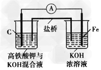 1、填空题 如图是某具有高效能的高铁电池的实验装置,已知放电后,两极得到铁的相同价态的化合物。