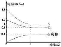 2、填空题 一定条件下,在l L密闭容器中C12(g)、S(g)发生反应(产物只有一种),三种物质的物质的量随时间变化的曲线如图所示,请回答下列问题