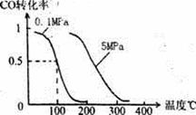 CH3OH(g);CO的转化率与温度、压强的关系如右图所示。