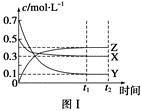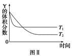 5、选择题 某温度时,在密闭容器中,X、Y、Z三种气体浓度的变化如图Ⅰ所示,若其它条件不变,当温度分别为T1和T2时,Y的体积分数与时间关系如图Ⅱ所示。则下列结论正确的是