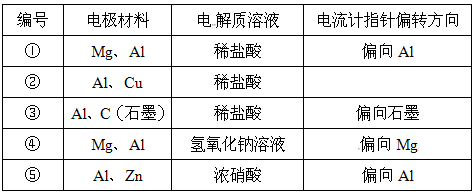 (1)实验①、⑤中Al电极的作用是否相同?(填“是”或“否”);