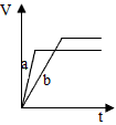 2、选择题 等物质的量的两份稀硫酸a和b中,分别加入过量的锌粉,并向a中加入少量硫酸铜,下图表示产生H2的体积(V)与时间(t)的关系正确的是