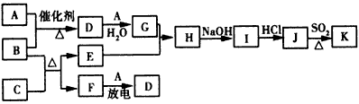 (4)汽车尾气中常含有D,B与D在加热和催化剂存在的条件下,发生反应生成两种对空气无污染的物质。 请写出该反应的化学方程式____________________。