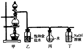 (2)丙中液体呈黄绿色,丙上部空间呈黄绿色,有黄绿色气体进入丁中