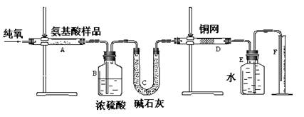 | D | 点燃法除去CO2中的CO杂质 | 无法点燃 | CO的着火点较高 参考答案:D 本题解析:D.点燃法除去CO2中的CO杂质,无法点燃的原因在于氧气很少,二氧化碳很多,二氧化碳不支持燃烧;正确操作为,通过灼热的氧化铜粉末。 本题难度:简单 5、实验题 (12分)实验室用燃烧法测定某种氨基酸(CxHyOzNm)的分子组成。取w g该种氨基酸放在纯氧中充分燃烧,生成二氧化碳、水和氮气。按下图所示装置进行实验。回答下列问题: 参考答案:(12分) 本题解析:(1)注意由于装置中存在N2,则会影响对燃烧后产生N2体积的测量,所以需要充入氧气(2)A中物质需燃烧则加热? D中炽热的铜网才能除去氧气而达到吸收未反应的氧气则需加热?由于开始需通入氧气而要用炽热铜网除氧气则要先加热(3)由有机物燃烧的性质可知其产物,再由原子守恒配平即可,且注意条件的标注,(5)由质量守恒可知氨基酸的质量应为碳原子质量加氢原子质量加氧原子和氮原子的质量,由生成二氧化碳气体的质量可知其碳原子的质量,同理可知氢和氮的质量,由总质量减去已知原子的质量则知氧原子的质量,同时可以知道其各自的物质的量,由总质量除以摩尔质量可知有机物的物质的量,则可分别算出xyzm的值 本题难度:一般 |