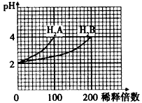 1、选择题 常温下,取pH=2的两种二元酸H2A与H2B各1 mL,分别加水稀释,测得pH变化与加水稀释倍数有如图所示关系,则下列有关叙述正确的是