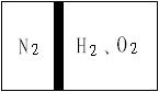 5、填空题  (4分)常温下,在一刚性容器内部有一个不漏气且可以滑动的活塞,将容器分割成左右两室。左室充入N2,右室充入H2和O2,活塞正好使N2占容器体积的1/4(如图)。