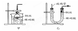 (3)为证明铜丝与稀硝酸反应生成的确实是NO,某学生另设计了一套如图乙所示的装置制取NO。反应开始时,可以在U形管右端观察到无色的NO气体。长玻璃管的作用是_______________________________________。