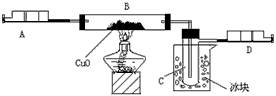 3、实验题 某学生模拟“李比希元素定量分析法”测定一种有机物X的组成,做了如下图所示的实验。他将0.3gX的蒸气由注射器A缓慢送入装有CuO的B装置,使之完全反应,得到如下结果