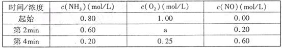 (2)在容积固定的密闭容器中发生上述反应,容器内部分物质的物质的量浓度如下表: