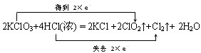 5、填空题  (5分)氯酸钾与浓盐酸在一定温度下反应会生成绿黄色的易爆物二氧化氯,反应的化学方程式为:2KClO3 + 4HCl(浓) === 2KCl + 2ClO2↑+ Cl2↑+ 2H2O