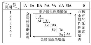 9.按照表中元素的位置,认真观察从ⅢA族的硼到ⅦA族的砹连接的一条折线,我们能从分