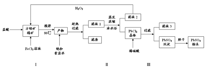 2、填空题 (16分)硫酸铅(PbSO4)广泛应用于制造铅蓄电池、白色颜料等。利用方铅矿精矿(PbS)直接制备硫酸铅粉末的流程如下: