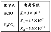 3、选择题  根据下表提供的数据,判断在等浓度的NaClO、NaHCO3混合溶液中,各种离子浓度关系正确的是