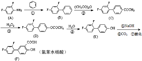 3、填空题 氟苯水杨酸(diflunisal)是一种新型的水杨酸类消炎解热镇痛良药,具有强效、长效低毒等特点。一种可行的合成路线如下(催化剂及溶剂等已省去)