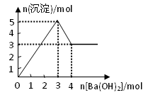 1、选择题 右图表示在某溶液中滴加Ba(OH)2溶液时,沉淀的物质的量随Ba(OH)2的物质的量的变化关系。该溶液的成分可能是