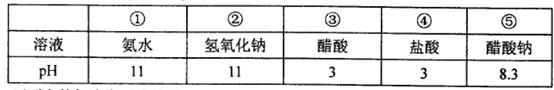 D.在⑤中加入适量的④至溶液呈中性,所得溶液中:c(Na+)>c(CH3COO-)> c(Cl-)>c(OH-)= c(H+)。