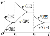 t2:降低温度,瞬间正、逆反应速率都低于增大CO的浓度到达平衡时的速率,正反应为吸热反应,平衡向逆反应方向移动,正反应速率降低更大,图象为: